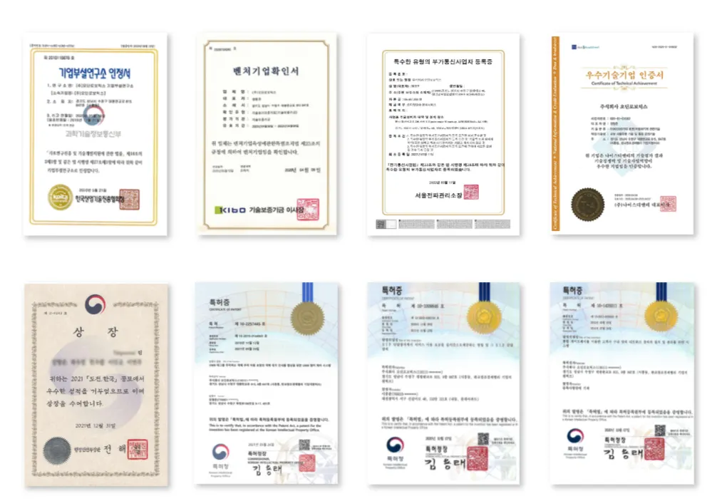 2021년 소상공인 협회에서 무인상점 핵심기술 2종류(키오스크, AI매장운영) 공급기업으로 선정되었고, 2021년 도전한국! 키오스크 범죄상황인지 및 현장대응 기술 우수상을 수상하는 등 기술력을 인정 받고 있습니다.