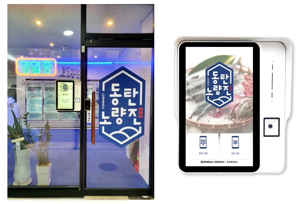 24시 무인 회 수산물 편의점 매장 입구에 설치된 헤임달 무인365 출입기. [사진=오딘로보틱스]